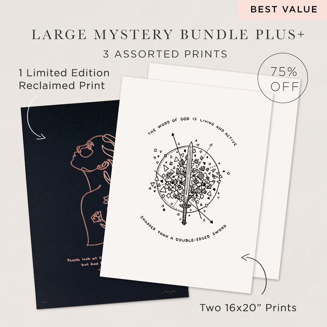 Available for a limited time, these Mystery Bundles feature assorted Reclaimed & Redeemed™ art prints at a 50-75% discount.