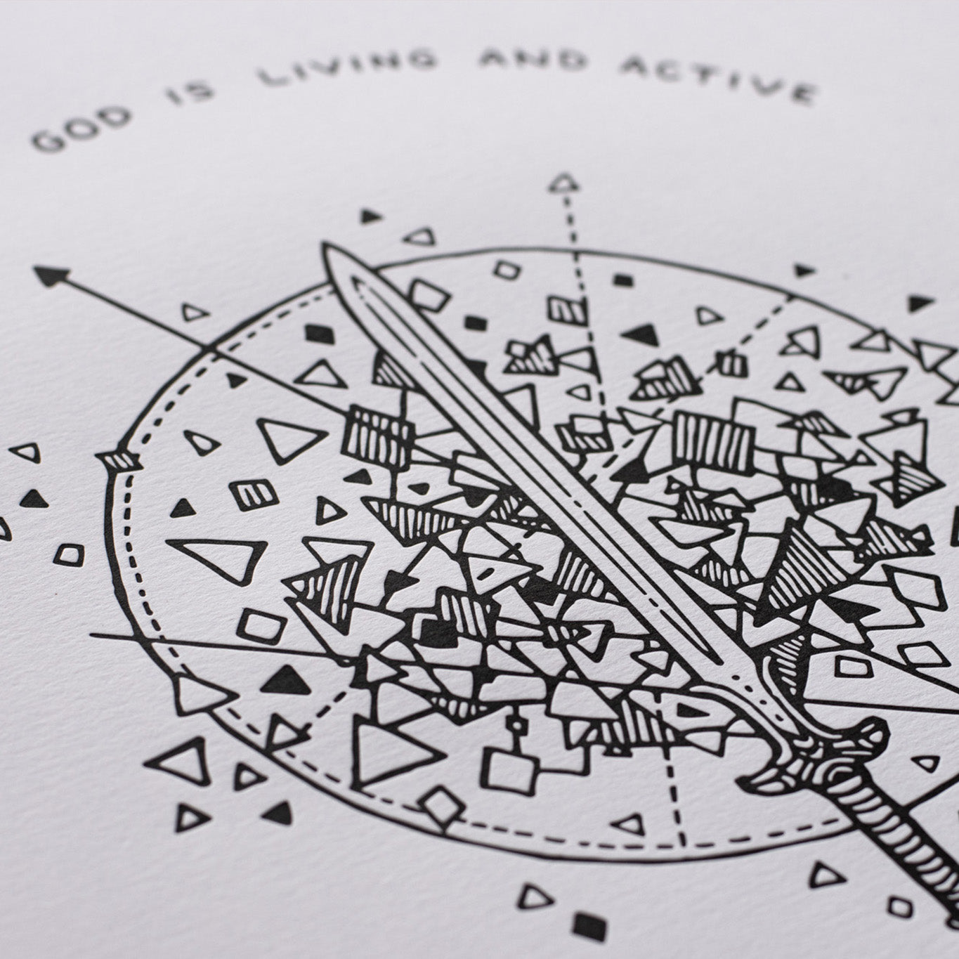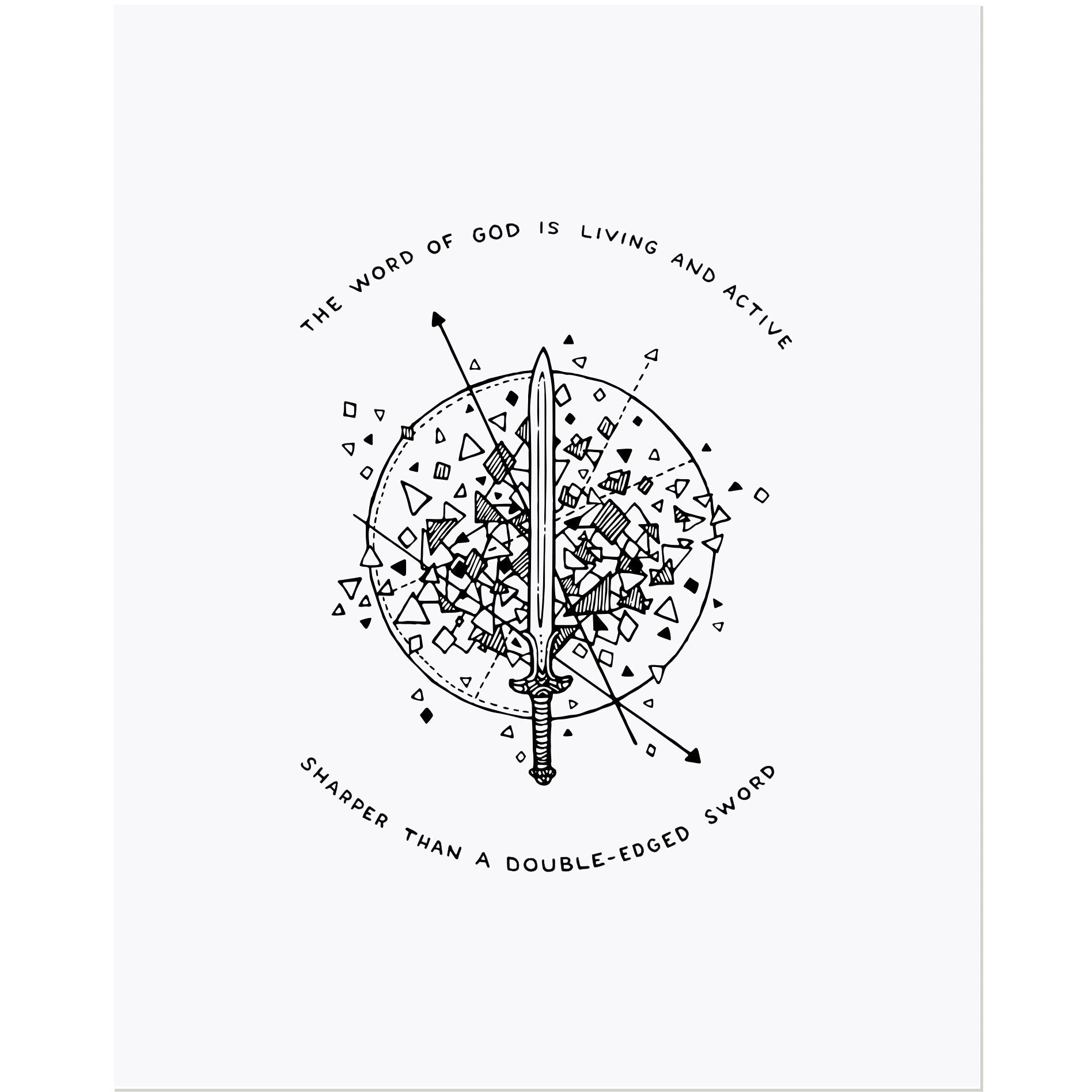 The Sword of the Spirit artwork features Hebrews 4:12 with a detailed illustration of a sword. The intricate elements surrounding the sword represent the dynamic quality of God's Word. Alive and active. Powerful and strong.