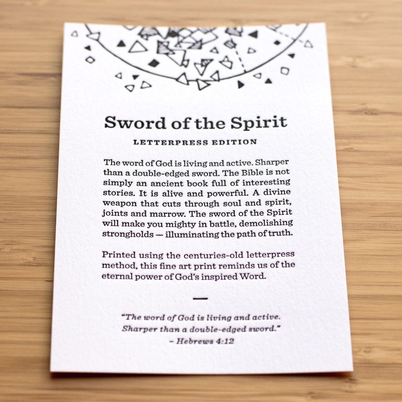 A new letterpress edition of our popular "Sword of the Spirit" artwork.