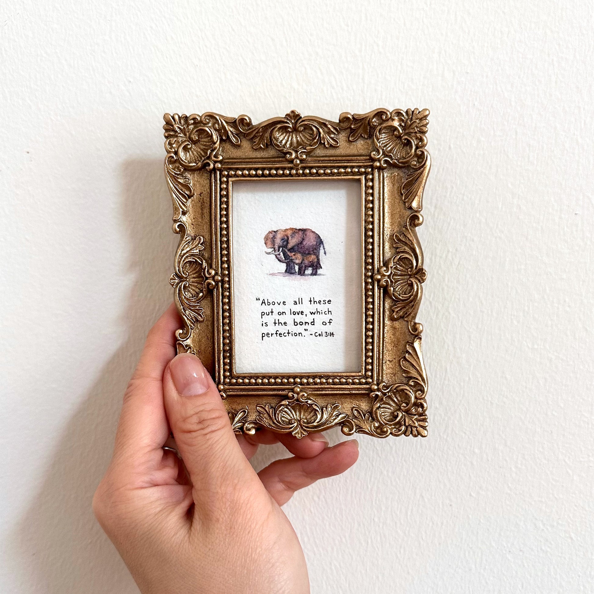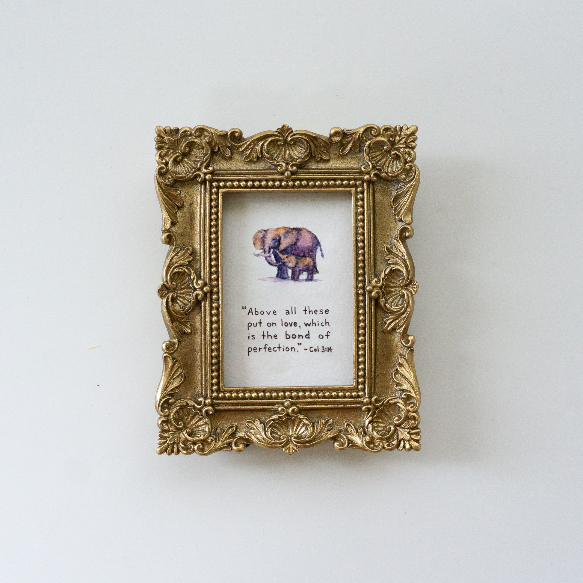 Beautifully set in a 3.6 x 4.5" ornate gold frame with glass—ready to hang or display on a tabletop.